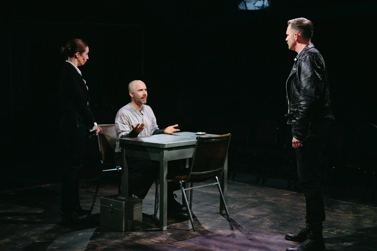 Andrews’ sound design is equally impressive, providing rich aural storytelling that fills in the cracks of the world beyond the interrogation room. The design does not merely accompany the action; it deepens it, building a full-sensory environment that sharpens dread and expands the production’s emotional reach.